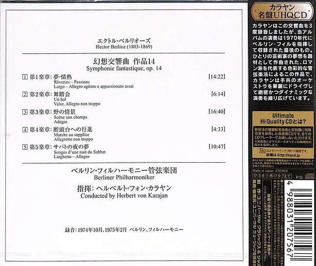 カラヤン3度目の幻想交響曲。同曲の録音としてはこれが最後となりました。(メーカー資料より)
