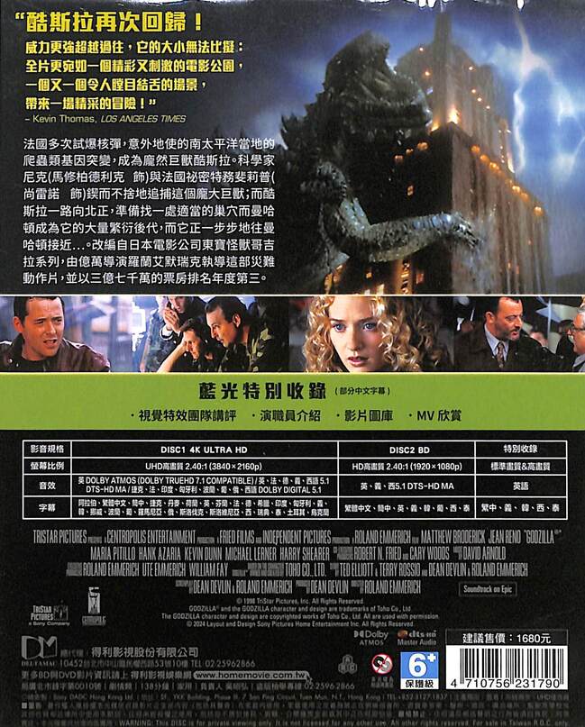 法國多次試爆核彈,意外地使的南太平洋當地的爬蟲類基因突變,成為龐然巨獸酷斯拉。科學家尼克(馬修柏德利克 飾)與法國祕密特務斐莉普(尚雷諾 飾)鍥而不捨地追捕這個龐大巨獸;而酷斯拉一路向北正,準備找一處適當的巢穴而曼哈頓成為它的大量繁衍後代,而它正一步步地往曼哈頓接近…。改編自日本電影公司東寶怪獸哥吉拉系列,由億萬導演羅蘭艾默瑞克執導這部災難動作片,並以三億七千萬的票房排名年度第三。