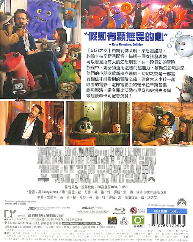 【幻幻之交】由凱莉佛萊明、萊恩雷諾斯、約翰卡拉辛斯基配音。 描述一個女孩發現她可以看見所有人的幻想朋友,在一段奇幻的冒險旅程中,她必須運用這樣的超能力,幫助幻幻和忘記他們的小朋友重新建立連結。幻幻之交是一部需要相信才能看到的冒險之旅,適合大人小孩一起收看的電影。這部電影由約翰卡拉辛斯基編劇和導演,還有菲菲比沃勒布里奇和史提夫卡爾等超豪華卡司配音演員!