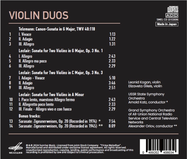 泰勒曼/易沙意/ Leclair : 雙小提琴奏鳴曲作品 /+ { 彩蛋 }  <流浪者之歌>  (兩首不同時期錄音比較)