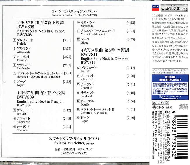 3. ENGLISH SUITE NO.3 IN G MINOR. BWV808 / Sviatoslav Richter