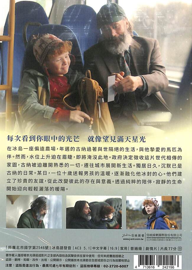 在冰島一座偏遠農場,年邁的古納過著與世隔絕的生活,與他摯愛的馬匹為伴。然而,水位上升迫在眉睫,即將淹沒此地。政府決定徵收這片世代相傳的家園,古納被迫離開熟悉的一切,遷往城市展開新生活。獨居日久,沉默已是古納的日常。某日,一位十歲送報男孩的溫暖,逐漸融化他冰封的心。他們建立了珍貴的友誼,從此改變彼此的存在與意義。透過純粹的陪伴,寂靜的生命開始迎向輕輕灑落的暖陽。