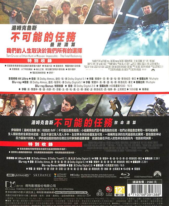MI8 克里斯多弗麥奎里及湯姆克魯斯隨片講評 刪減片段 展翅高飛-雙翼飛機片段拍攝 深潛險境-水下特技揭秘 極北之境-斯瓦爾巴群島外景拍攝 額外講評 電影配樂純享版 更多!