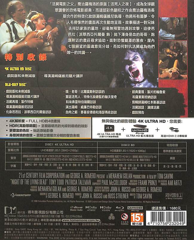 UHD (戲院版以及未修剪版)英語DOLBY ATMOS (DOLBY TRUEHD 7.1 COMPATIBLE) /英語 DTS-HD MA 5.1/(戲院版)英、義、西語STEREO DTS-HD MA /德語MONO 2.0 DTS-HD MA