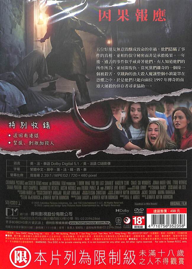 五位好朋友無意間釀成致命的車禍,他們隱瞞了事件的真相,並相約保守秘密而非是承擔後果。一年後,過去的事件似乎威脅著他們,有人知道他們的所作所為,並展開復仇。當死黨們離奇的一個接一個被殺害,拿鐵鉤的漁夫殺人魔讓整個小鎮籠罩在恐懼之中,於是他們只能向兩位1997年傳奇的南港大屠殺的倖存者尋求協助…。