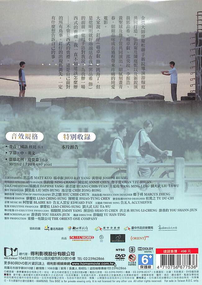 金獎大師廖慶松聯手新銳導演游翰庭共同打造,張鈞甯及陳庭妮以及新銳演員郭品希、楊卓叡、邵奕玫、李振浩、黃聖球及詹子萱共同演出,細膩刻畫青春,細細品味成長過程帶來疼痛的純愛電影。 大家說,釘仔(楊卓叡 飾)跳海了,但是他明明就好端端站在我(郭品希