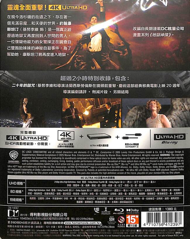 UHD Dolby Atmos-TrueHD: 英、Dolby Digital: 法 5.1、西 5.1、拉丁 2.0、德 5.1、義 5.1
