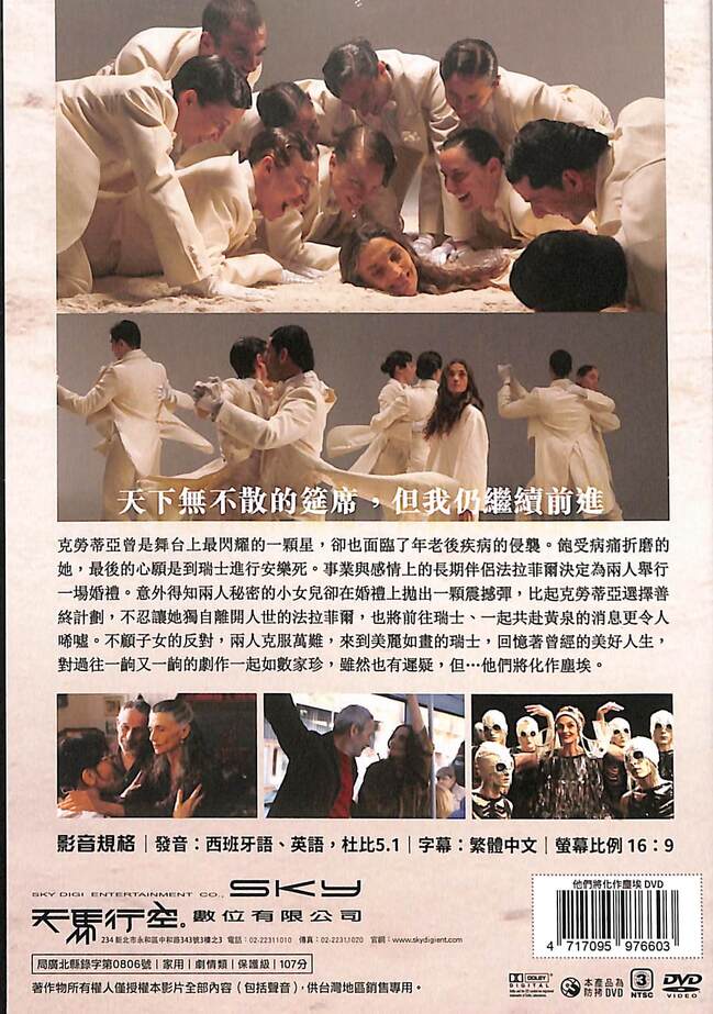 克勞蒂亞曾是舞台上最閃耀的一顆星,卻也面臨了年老後疾病的侵襲。飽受病痛折磨的她,最後的心願是到瑞士進行安樂死。事業與感情上的長期伴侶法拉菲爾決定為兩人舉行一場婚禮。意外得知兩人秘密的小女兒卻在婚禮上拋出一顆震撼彈,比起克勞蒂亞選擇善終計劃,不忍讓她獨自離開人世的法拉菲爾,也將前往瑞士、一起共赴黃泉的消息更令人唏噓。不顧子女的反對,兩人克服萬難,來到美麗如畫的瑞士,回憶著曾經的美好人生,對過往一齣又一齣的劇作一起如數家珍,雖然也有遲疑,但…他們將化作塵埃。