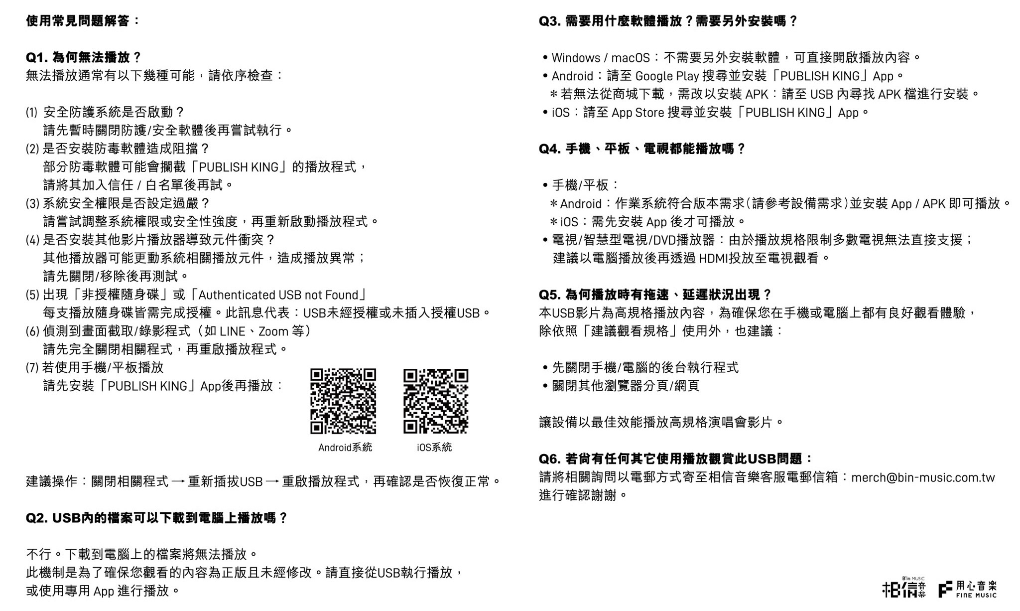 使用播放前請務必留意:非所有USB播放裝置均相容!DVD 播放器或電視設備之 USB 插槽無法讀取,建議使用電腦、以HDMI連接線轉接播放。