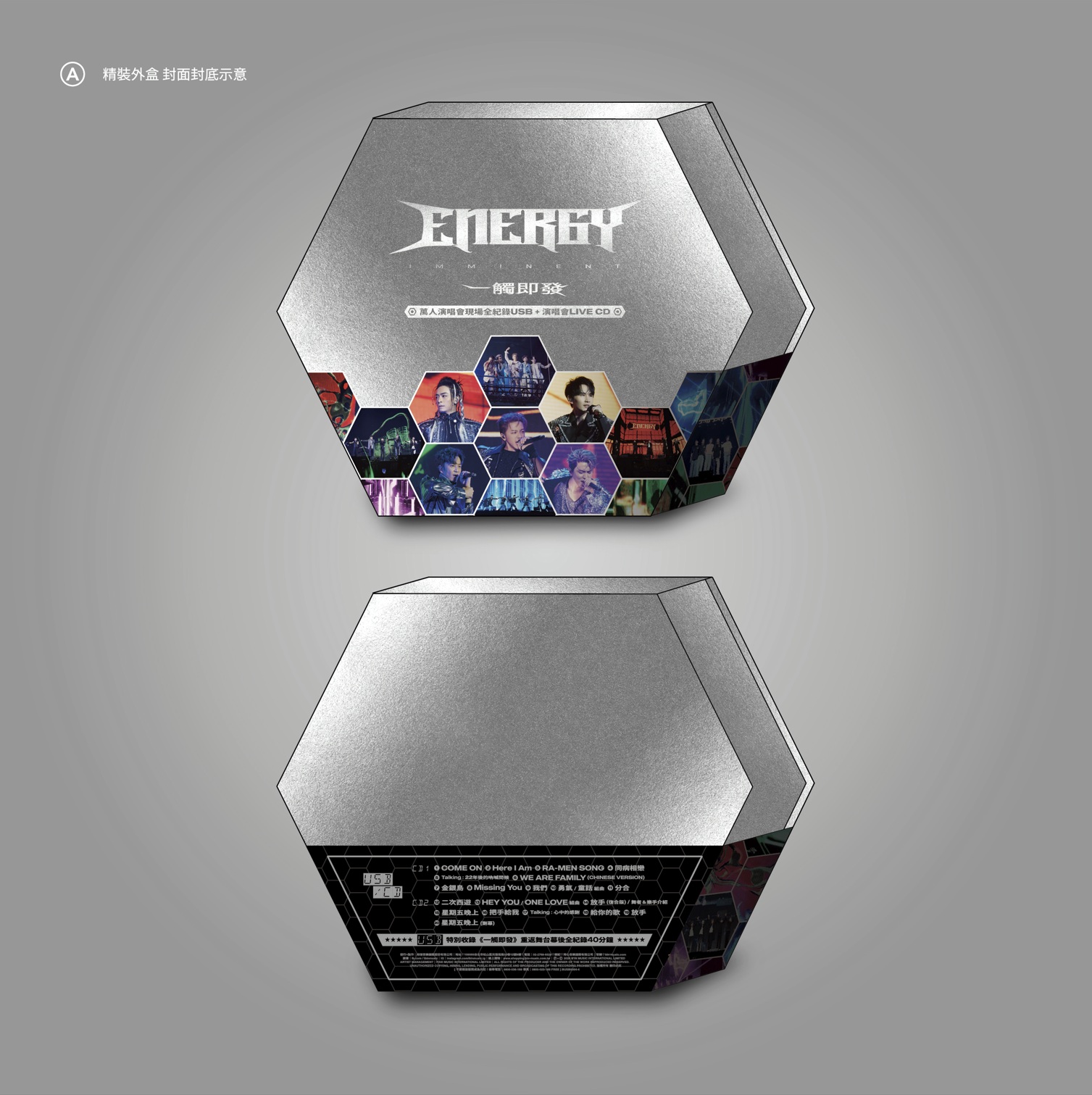 Energy《一觸即發》萬人演唱會現場全記錄USB+演唱會LIVE CD 收錄演唱會中〈某年某月某一天〉〈放手〉〈我們〉〈RA-MEN SONG〉〈Missing You〉〈分合〉〈星期五晚上〉等近20首回憶殺經典歌、復出必殺霸榜歌。更重金打造「能量王者」「街頭紅人」「柔情貴族」「白色戀人」「黑潮至尊」不同風格訂製服裝,融合各類演出主題瀟灑帥氣、突顯王者氣場!重回現場浮空三支6米高的移動「Energy電流光柱」、650公尺的MADRIX燈條、LED延伸「放電舞台」、TB 5 IP動感的炫光設計,四面八方近距離震撼,讓歌迷沉浸「無懈可擊」最大的能量補充站!