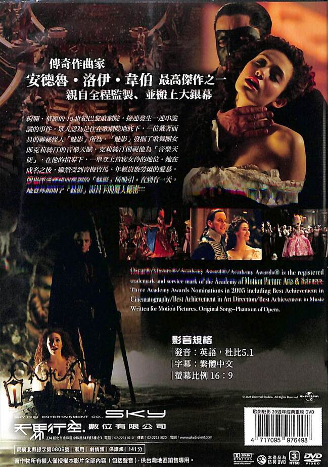 絢爛、華麗的19世紀巴黎歌劇院,接連發生一連串詭譎的事件,眾人認為是住在歌劇院地底下,一位戴著面具的神祕怪人「魅影」所為。「魅影」發掘了歌舞團女郎克莉絲汀的音樂天賦,克莉絲汀則視他為「音樂天使」,在他的指導下,一舉登上首席女伶的地位。她在成名之後,雖然受到青梅竹馬、年輕貴族勞爾的愛慕,卻也深受神祕而孤獨的「魅影」所吸引。直到有一天,她意外揭開了「魅影」面具下的驚人秘密…