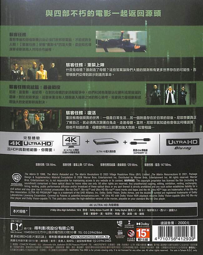 駭客任務 四部曲 UHD 4碟限定版 BLURAY系統