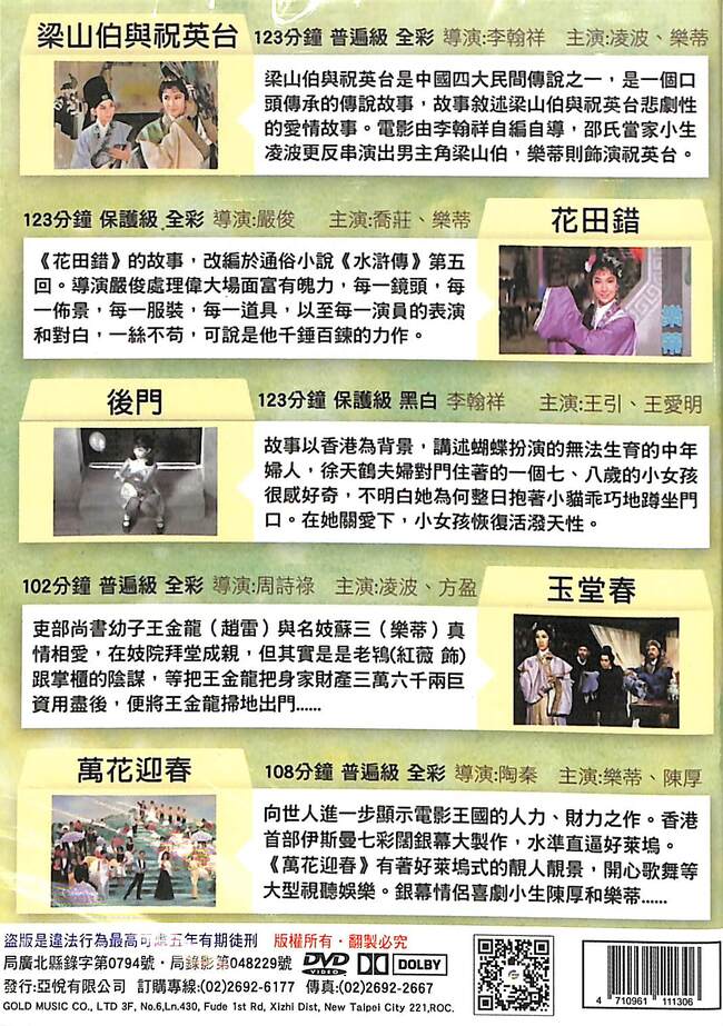 梁山伯與稅英台是中國四大民間傳說之一,是一個口頭傳承的傳說故事,故事敘述梁山伯與祝英台悲劇性的愛情故事。電影由李翰祥自編自導,邵氏當案小生凌波更反串演出男主角梁山伯,樂蒂則飾演祝英台。
