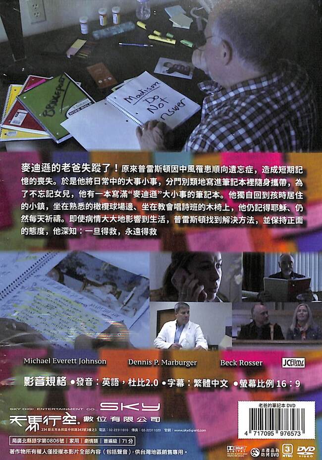 麥迪遜的老爸失蹤了!原來普雷斯頓因中風罹患順向遺忘症,造成短期記憶的喪失。於是他將日常中的大事小事,分門別類地寫進筆記本裡隨身攜帶,為了不忘記女兒,他有一本寫滿“麥迪遜”大小事的筆記本。他獨自回到孩時居住的小鎮,坐在熟悉的橄欖球場邊、坐在教會唱詩班的木椅上,他仍記得耶穌、仍然每天祈禱。即使病情大大地影響到生活,普雷斯頓找到解決方法,並保持正面的態度,他深知:一旦得救,永遠得救。